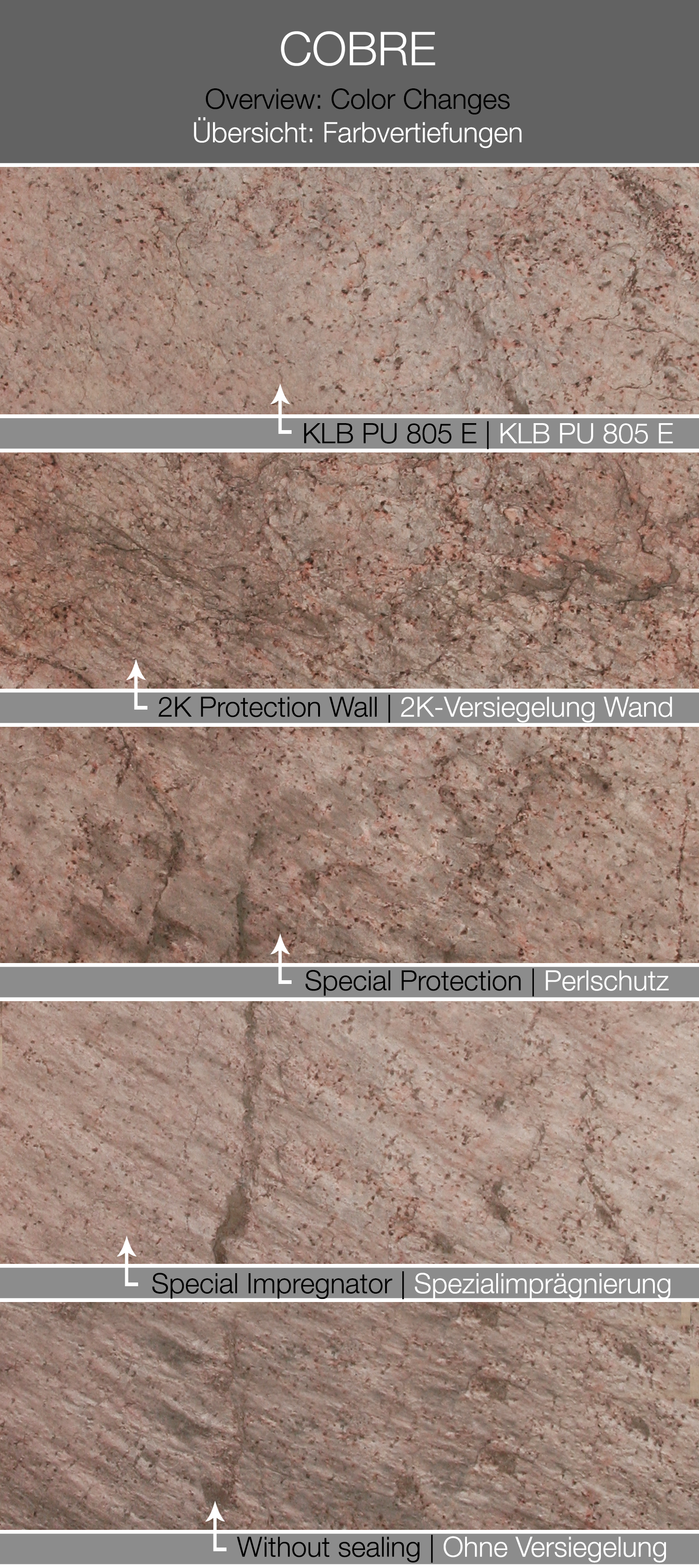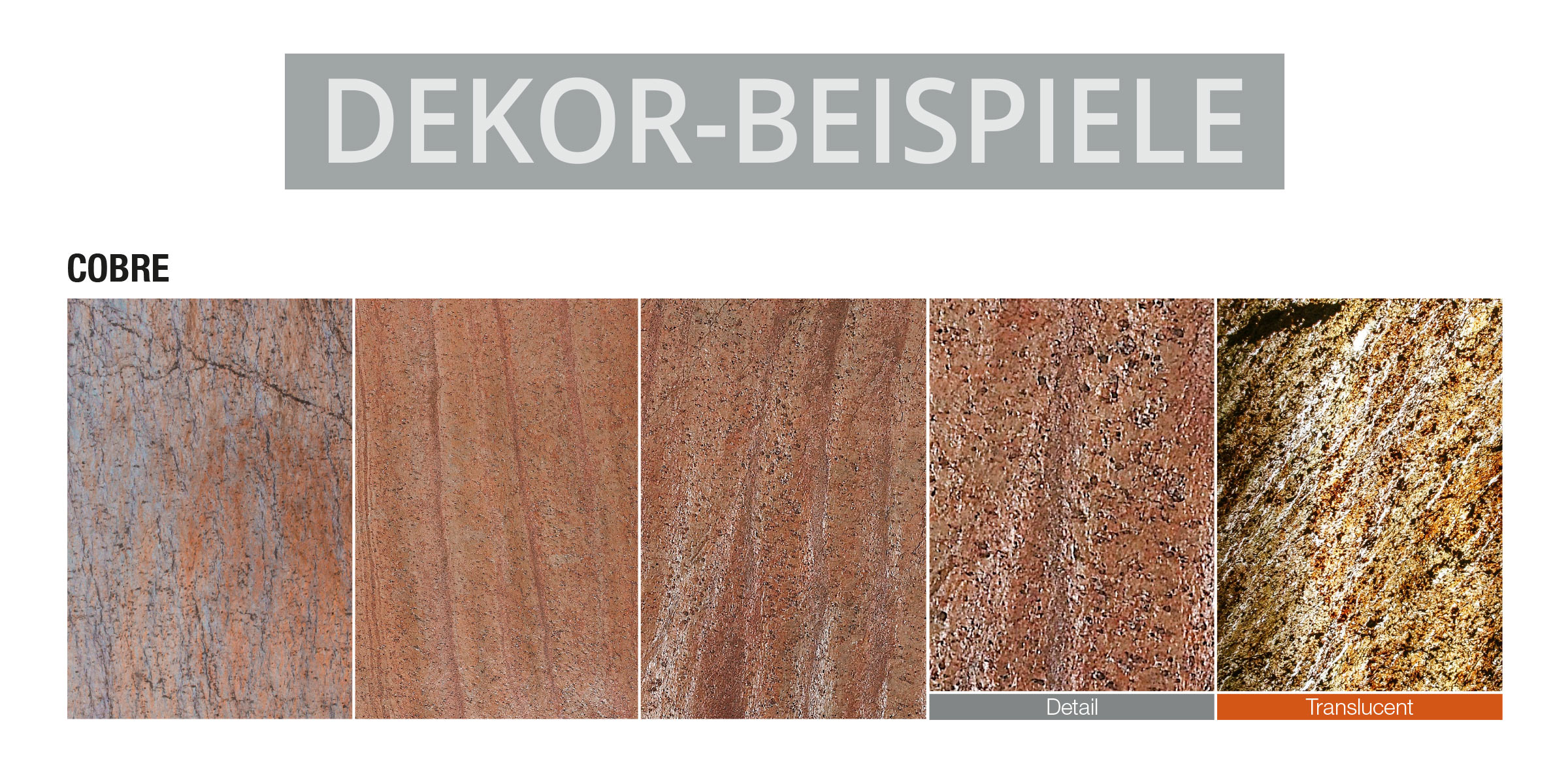 Cobre ist ein Glimmerschieferdekor mit einer echten Steinoberfläche. Der besondere Glimmereffekt entsteht durch einen erhöhten Anteil an Feldspat. Insgesamt ist die Oberfläche härter und weist eine stärkere Struktur auf, somit eignet sich dieses Material besonders für Wände als auch für Fußböden. Meistens bleibt der Glimmerschiefer sehr farbstabil in der Maserung der Oberfläche.